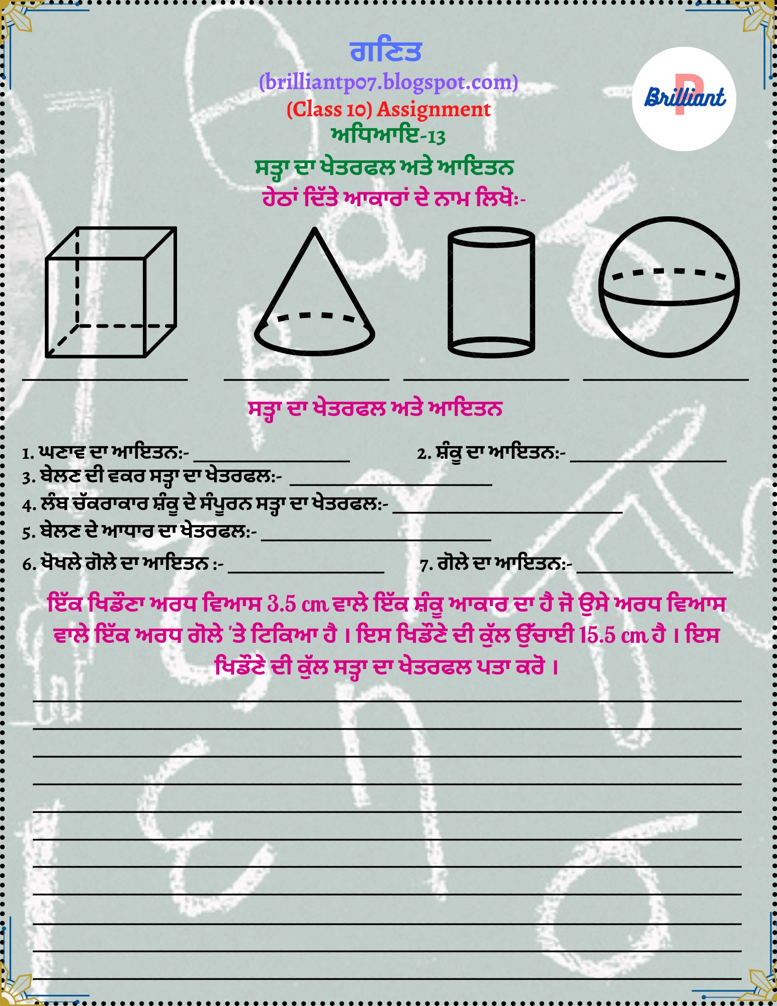 Class 10 Maths Chapter 13 Worksheet in Punjabi